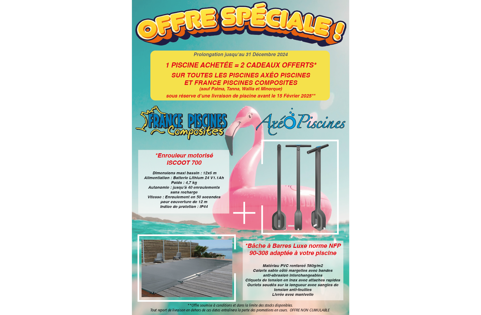 Jusqu’au 31 DÉCEMBRE 2024 pour 1 piscine achetée, profitez de 2 cadeaux offerts si installation de la piscine avant le 15 FÉVRIER 2025 !*