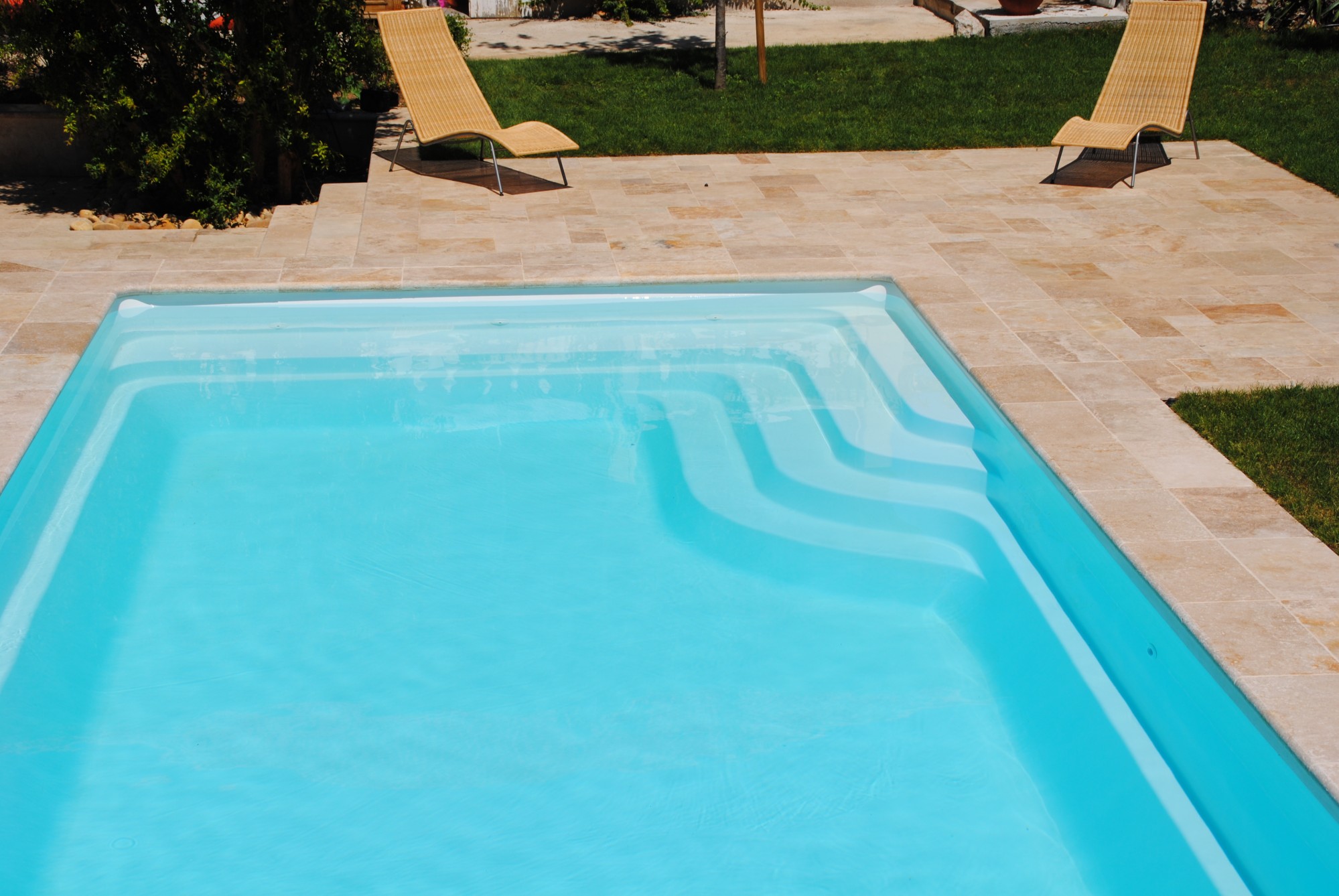 Voici la réalisation d'une piscine polyester à Nimes dans le Gard. Cette coque polyester de marque France piscines composites à étée installée dans les règles de l'art par www.francepiscinescomposites.com basé à Istres dans les Bouches du Rhone.
