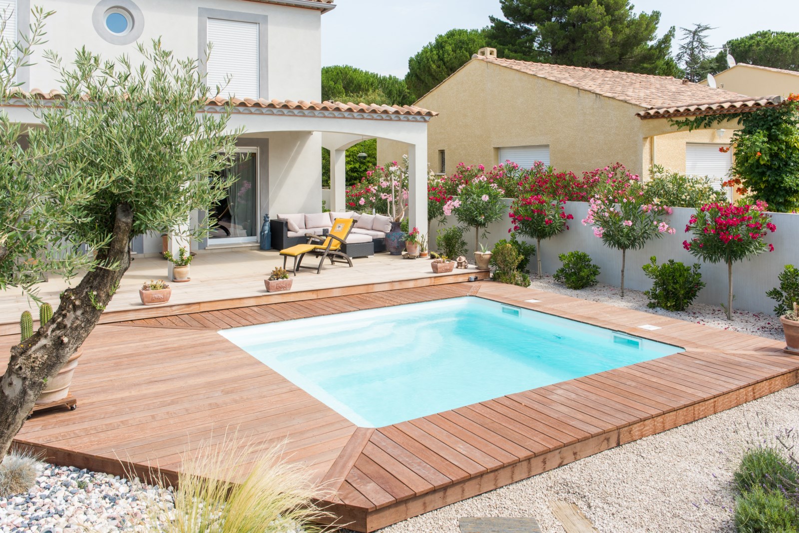 Réalisation d'une piscine coque polyester carré modèle Mayotte pour un client à Montpellier. Ce modèle contemporain idéal pour allier plaisir et détente s'adaptera aux constructions modernes et au terrains les plus petits.