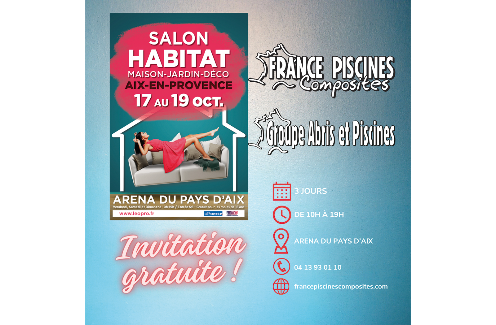France Piscines Composites et Groupe Abris et Piscines vous donne rendez-vous, dès demain, au Salon de l’Habitat d’Aix en Provence du 17 au 19 octobre 2025 !