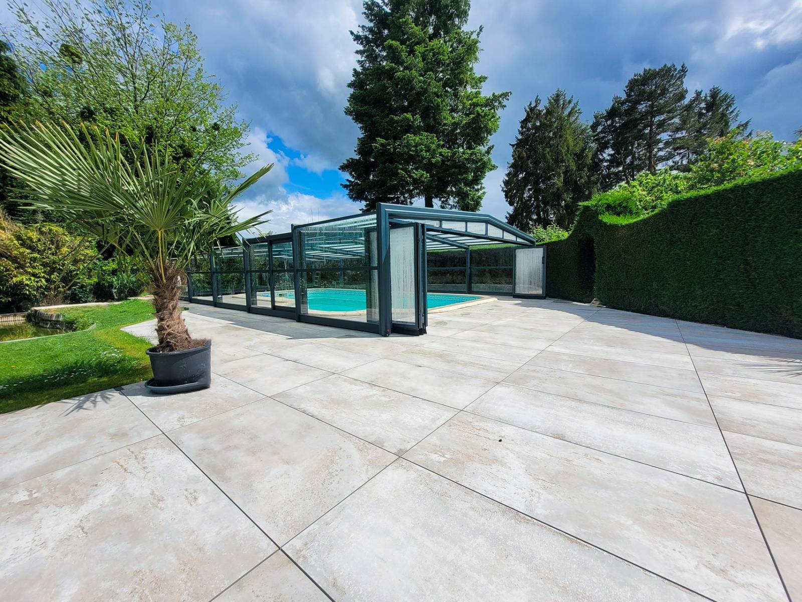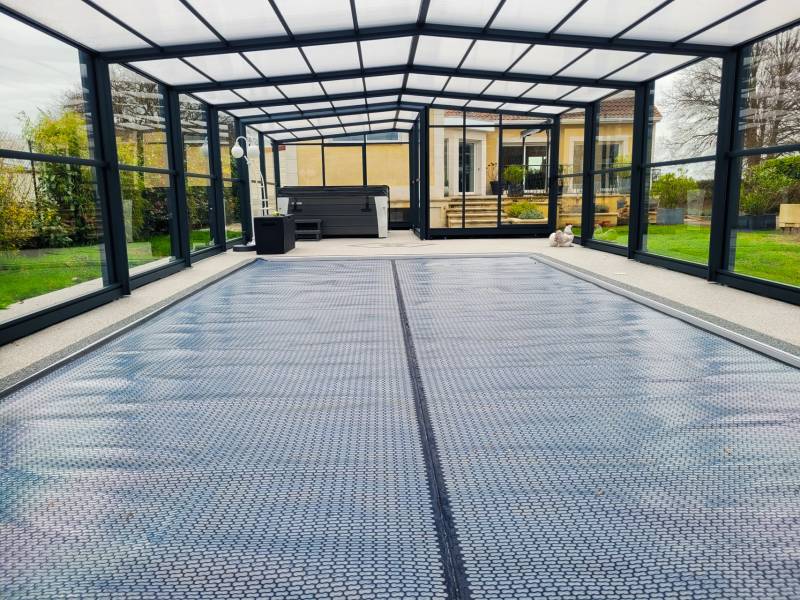 De fabrication 100% française avec des matériaux de qualités cet abri permet de créer un espace conviviale avec une belle hauteur permettant un aménagement arboré afin de profiter d'un bel espace de vie en extérieur. Facile à manipuler, vous apprécierez sa modularité et son design moderne lui permet de s’intégrer au mieux à votre extérieur. L’abri haut laisse entrer la lumière et les rayons du soleil pour une clarté absolue et préserver efficacement la température de l’eau pour une baignade toute l’année.